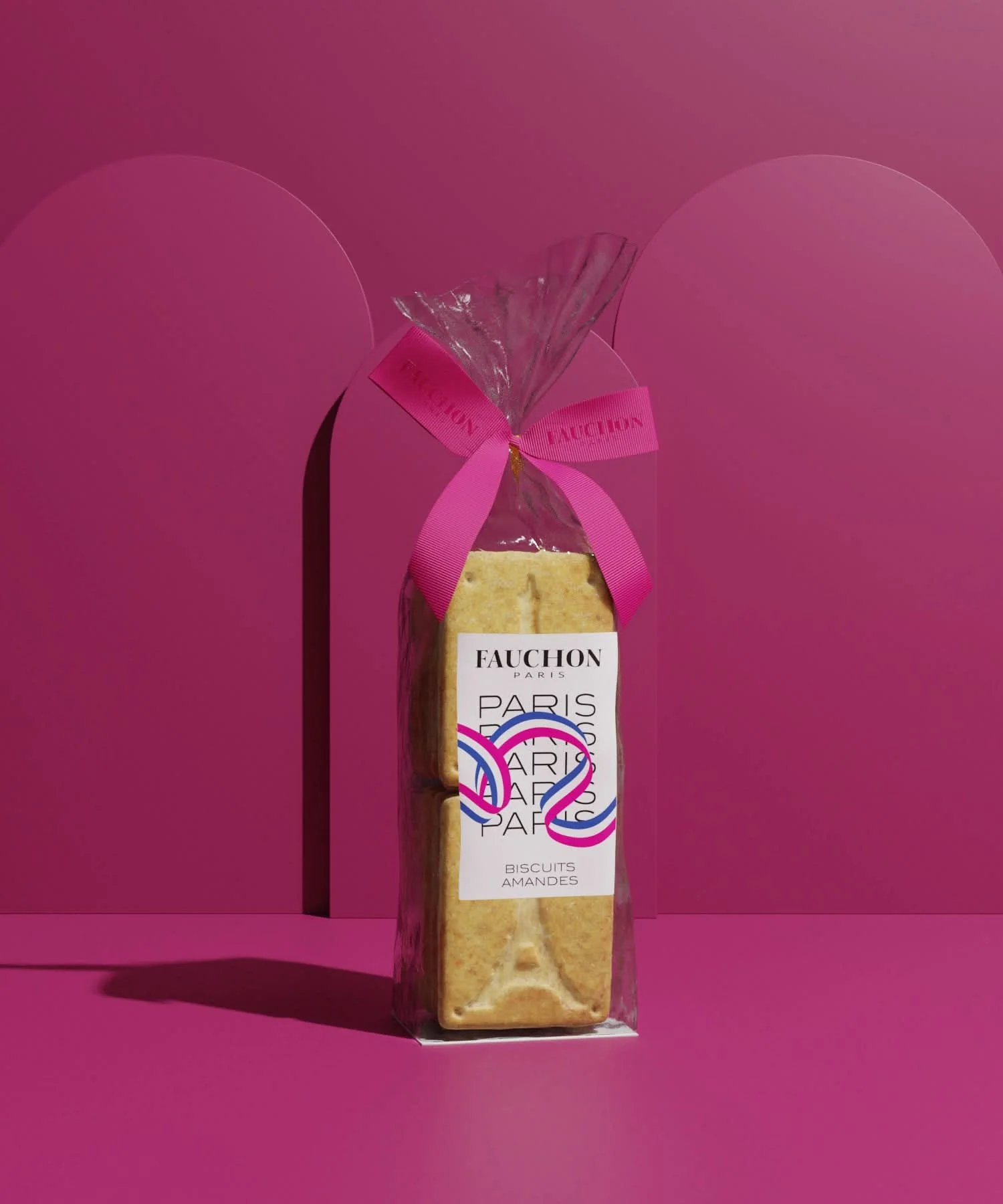 Ces biscuits siglés de la Tour Eiffel, dorés et croquants, ont le parfum doux et sucré de l'amande. Ils sont confectionnés en Bretagne à partir d’ingrédients de qualité, œufs frais de Lanouée et beurre frais de baratte breton.